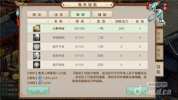 加入火系后你可以在赤霞童子处习得各项技能。金系善于忘记之术,木系毒术无双,水系有冻结技能,而火系的特色技能效果为“昏睡”,即擅长使仇人进入昏倒状态,在受到伤害清醒前无法利用法术、攻击或逃跑,但是可以补血。